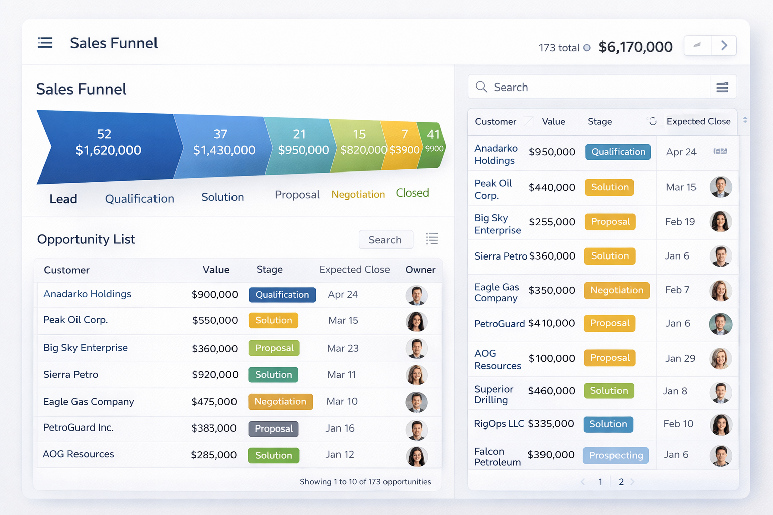 Now, every opportunity resides in the system. Who the customer is, how much the deal is worth, what stage it is in, what the next step is, when it is expected to close all update in real time.