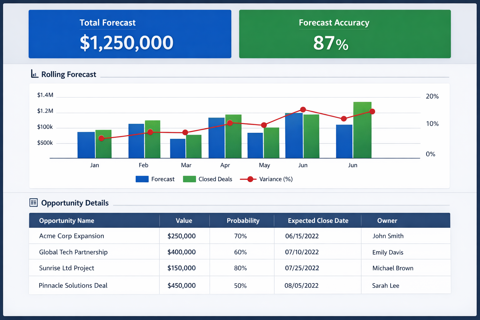 Previously, asking the sales director how much would close next month yielded answers like roughly, probably, estimated. Asking sales yielded answers like soon, almost, any day now. Leadership did not know when revenue would arrive. Finance did not know how to plan cash flow.