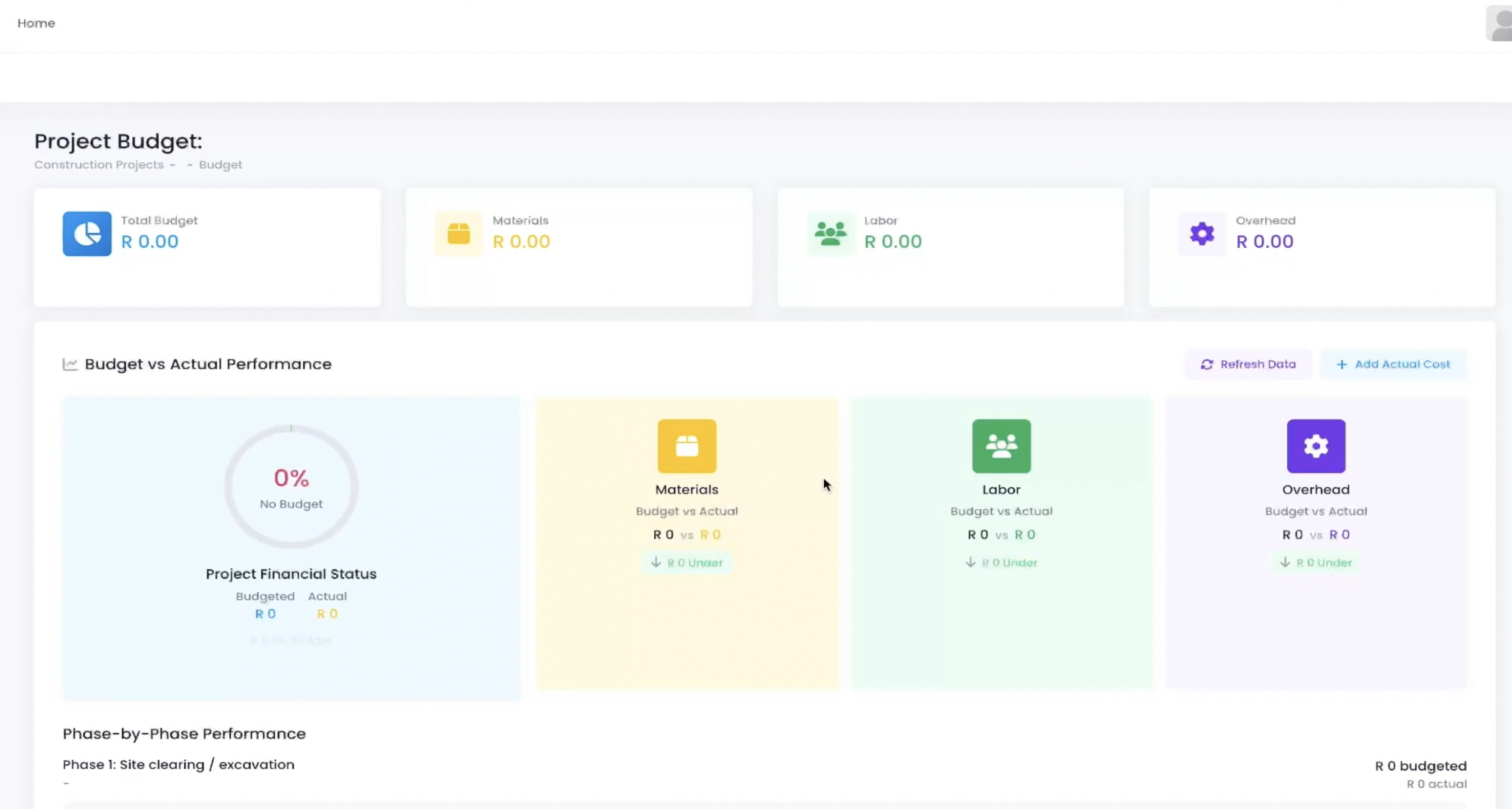 Each phase supports Refresh Data and Add Actual Cost